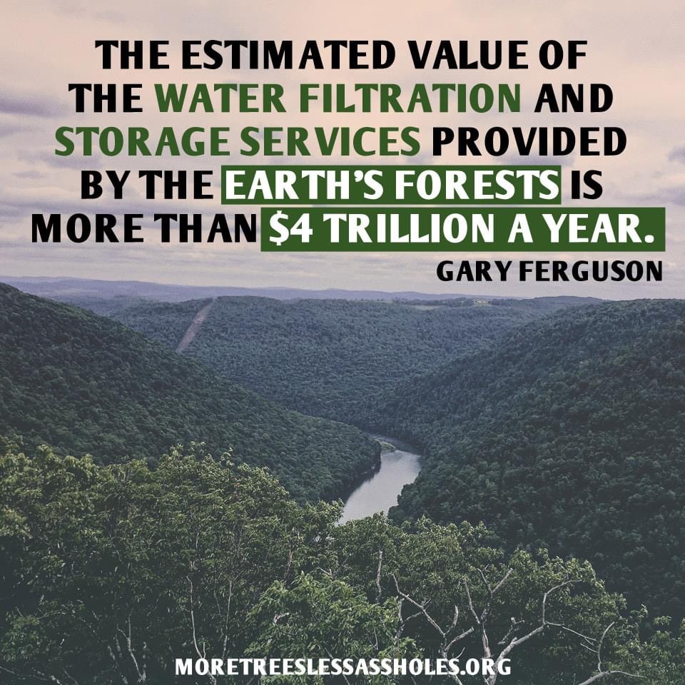 Деревья являются незаменимым природным инструментом круговорота воды, корнями выкачивая глубокие грунтовые воды из недр, выделяя в атмосферу молекулы воды и кислорода в результате транспирации и фотосинтеза.